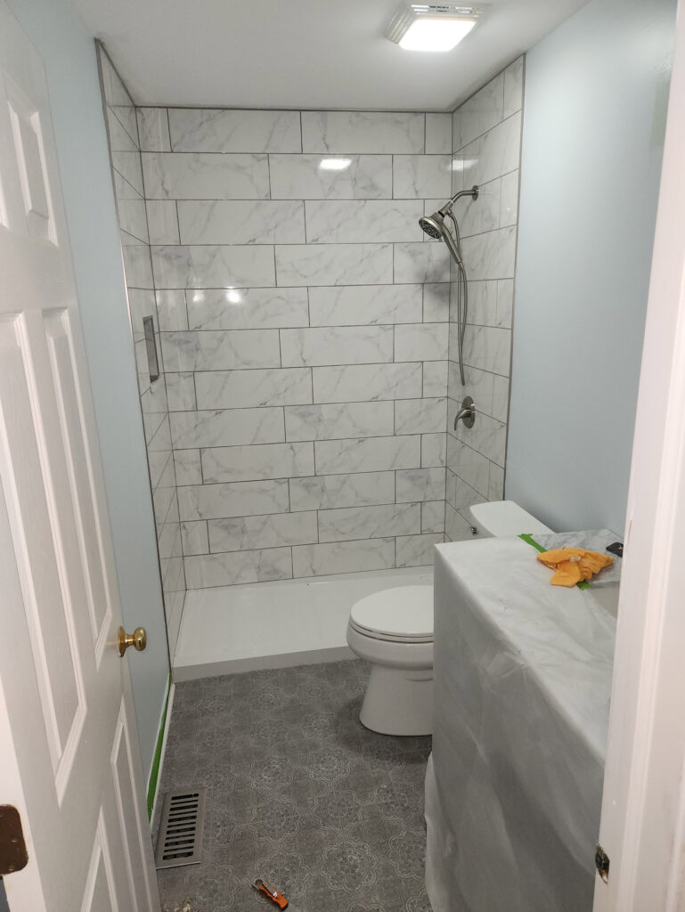 For this remodel, we handled the full refresh—careful demolition, prep work, and installation—so everything feels solid and cohesive. The project included new tile work (a major visual upgrade), an updated shower area with modern fixtures, and finishing details that pull the whole space together for a polished, “new bathroom” feel.